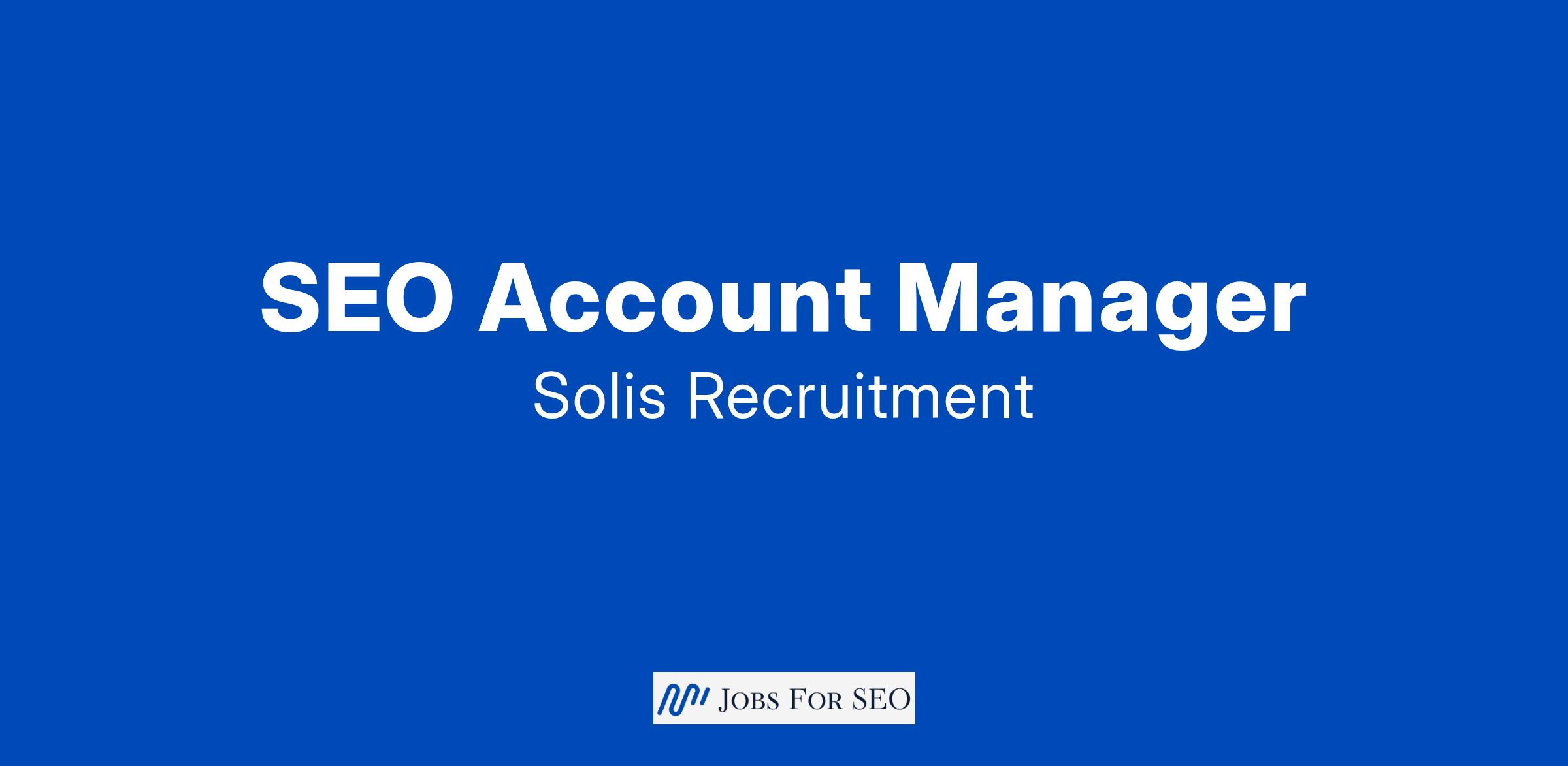 Solis Recruitment have proudly partnered with a growing SEO Agency looking for an SEO Account Manager.