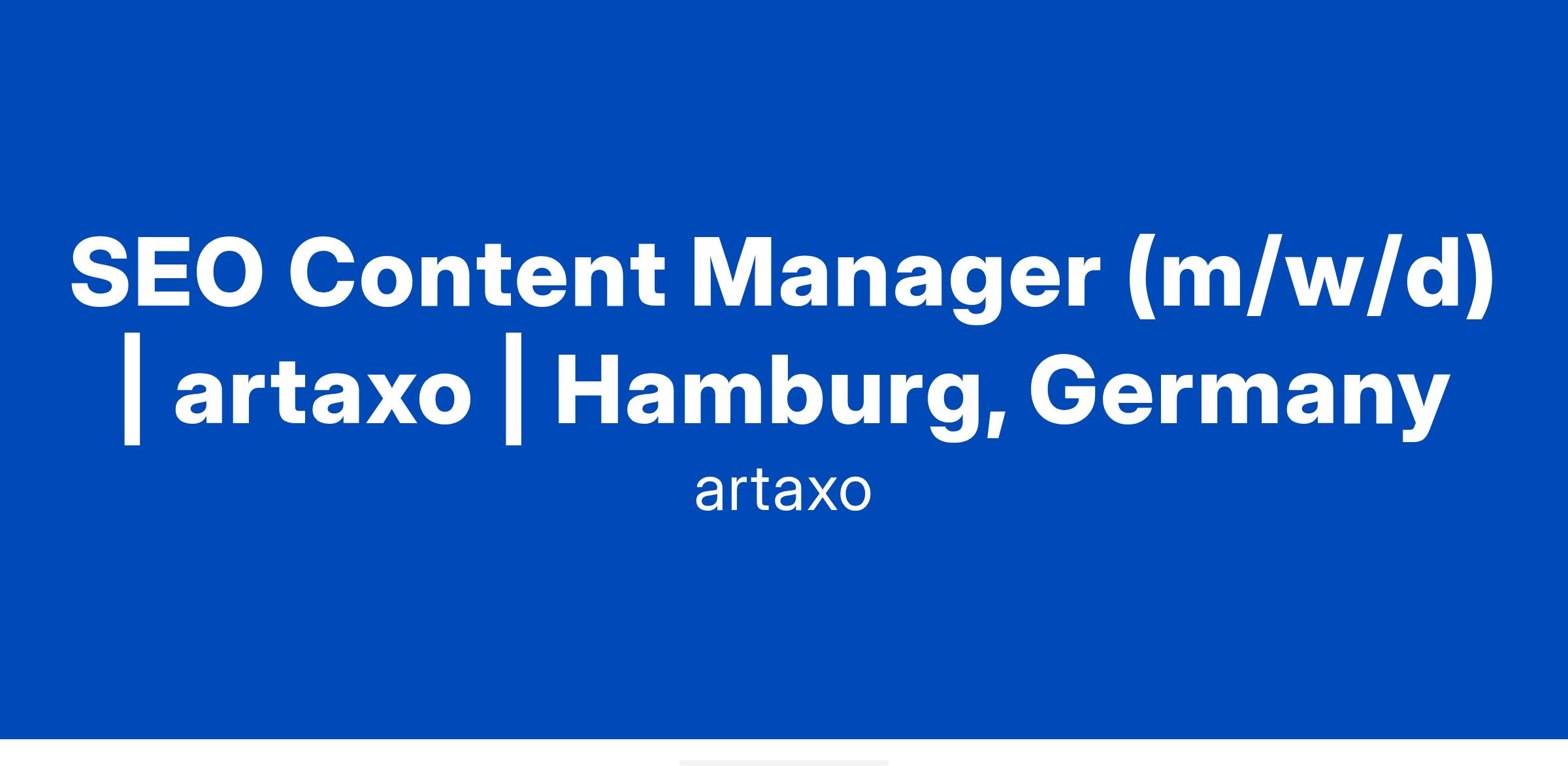 SEO Content Manager (m/w/d) | artaxo | Hamburg, Germany