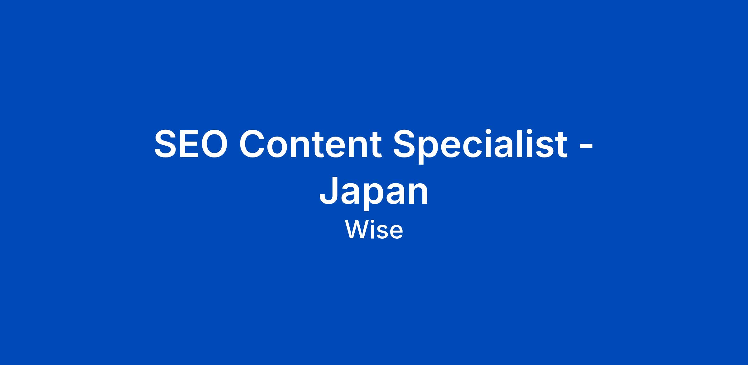Wise is looking for a SEO Content Specialist to join our growing SEO Content team and grow new business customers through B2B content for our Japan market. This role will be based in our Tokyo office.