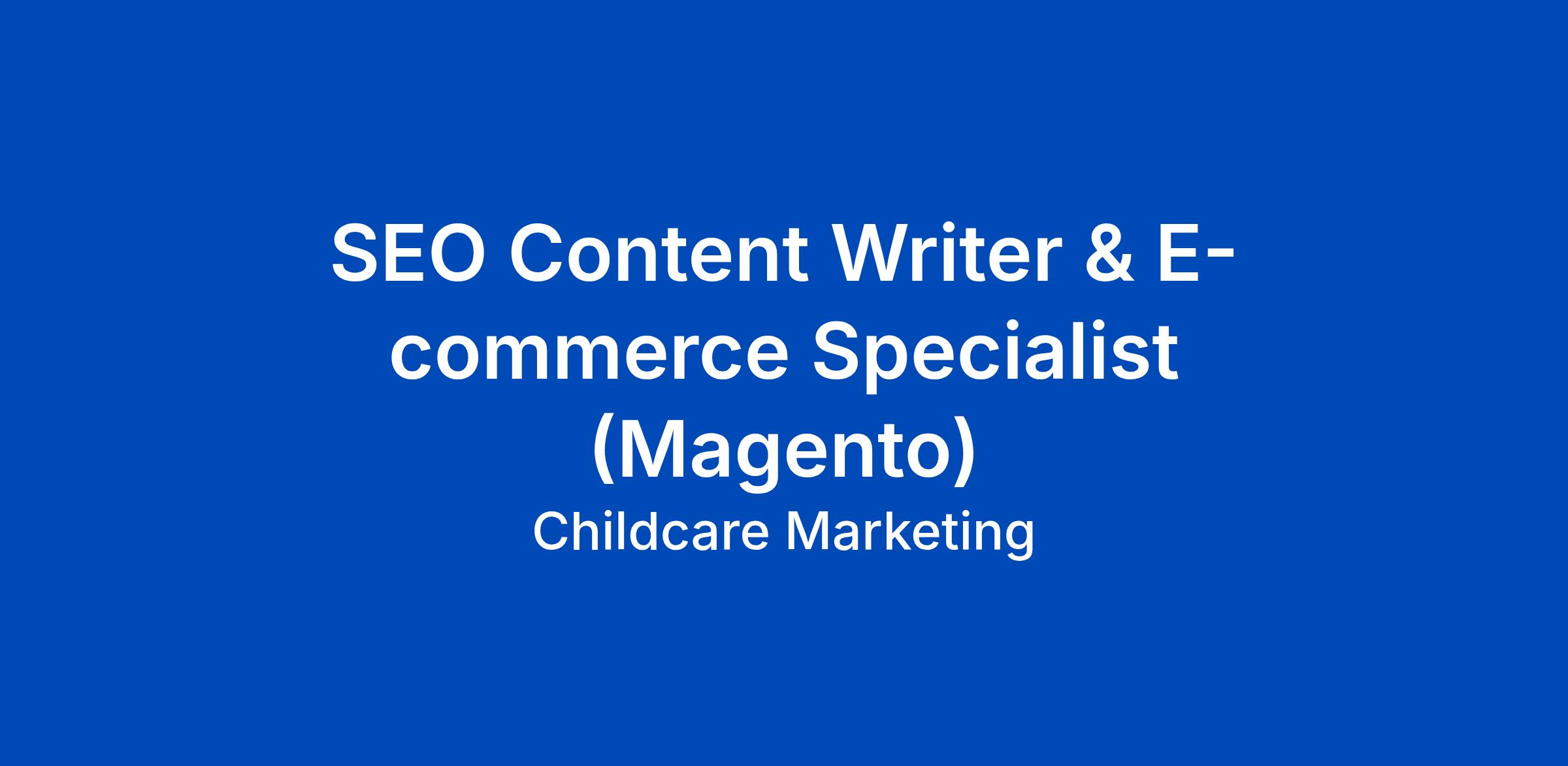 We are looking for a SEO Content Writer & E-commerce Specialist to join our team at Childcare Marketing on behalf of our confidential client.