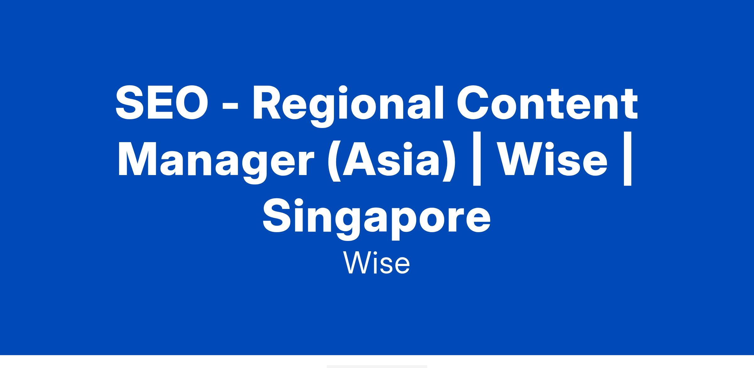 - Own the performance and growth strategy for generating new customers for Wise in Asia